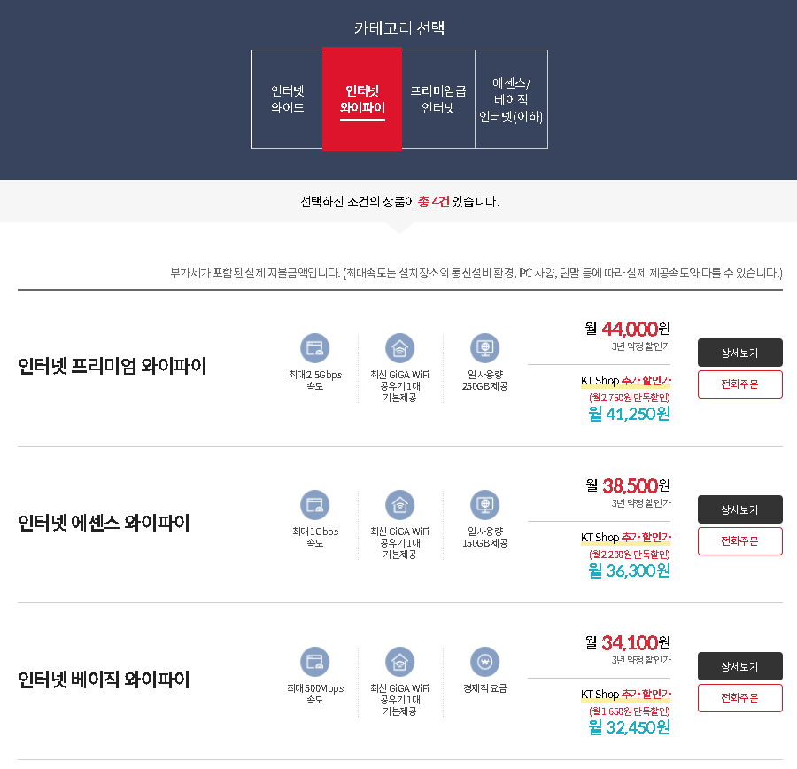 KT유저이기에 일단 KT 인터넷 가격을 알아보겠습니다. 교체를 해야하는 분들도 있으니 간단히