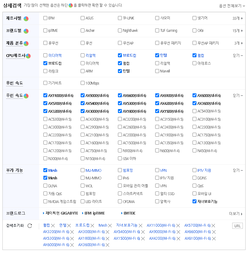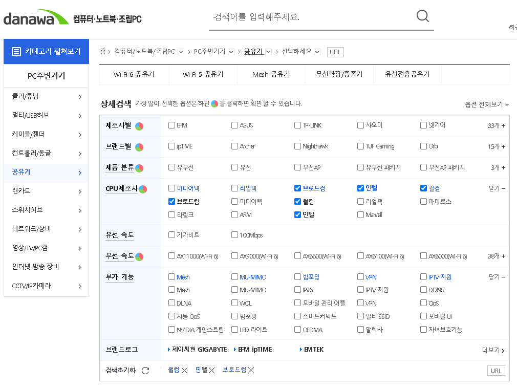 다나와에서 보시면 제조사선택해서 제품을 고르시면 됩니다.