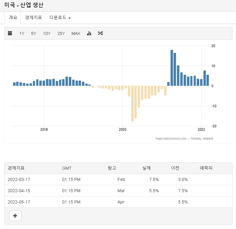 미국의 산업생산지표입니다. 보시면 알겠지만 코로나 이후 많은 성장이 있었고 그때문에 현재의 상황이 버블이라고 말하는 사람들이 많습니다. 저도 어떤 기업의 주가는 너무 높다고 생각하고 있습니다.