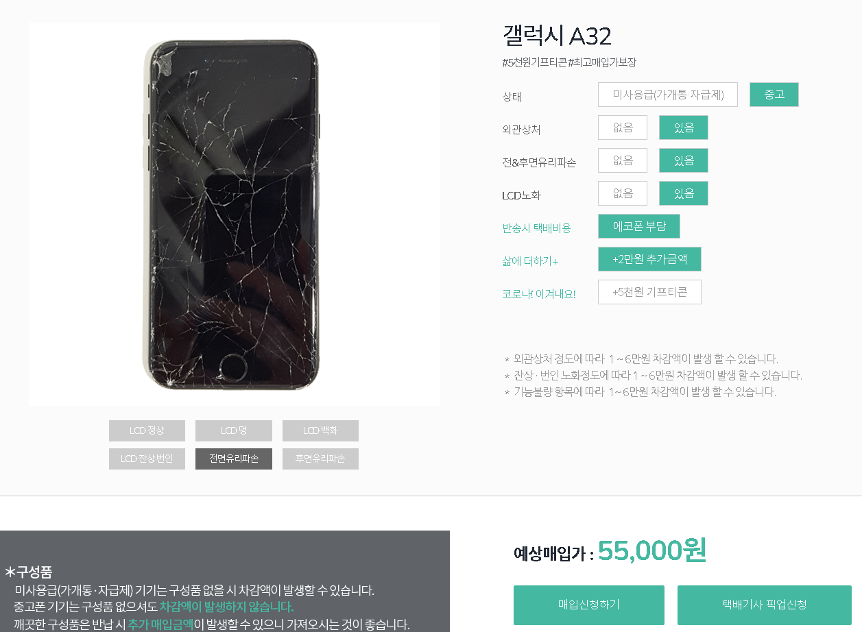 파손된 폰이라고 너무 후려쳐서 매입해가는게 그냥 고물상 수준밖에 안되니말입니다.