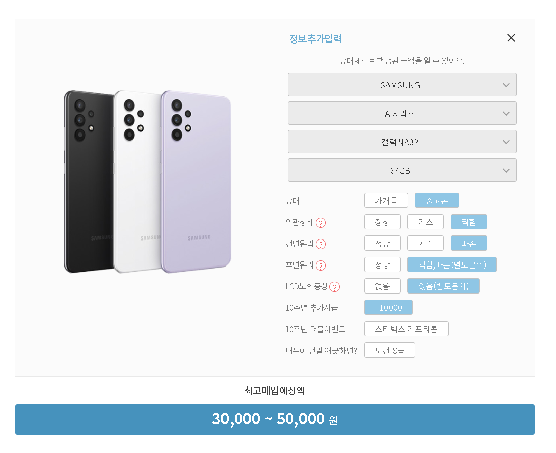 판매한 기종은 갤럭시A32와 LG G7입니다.